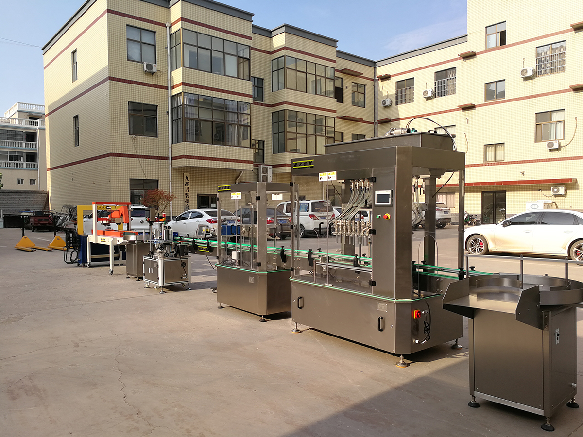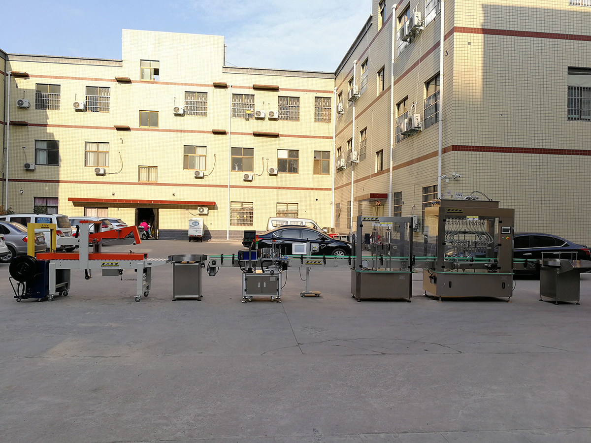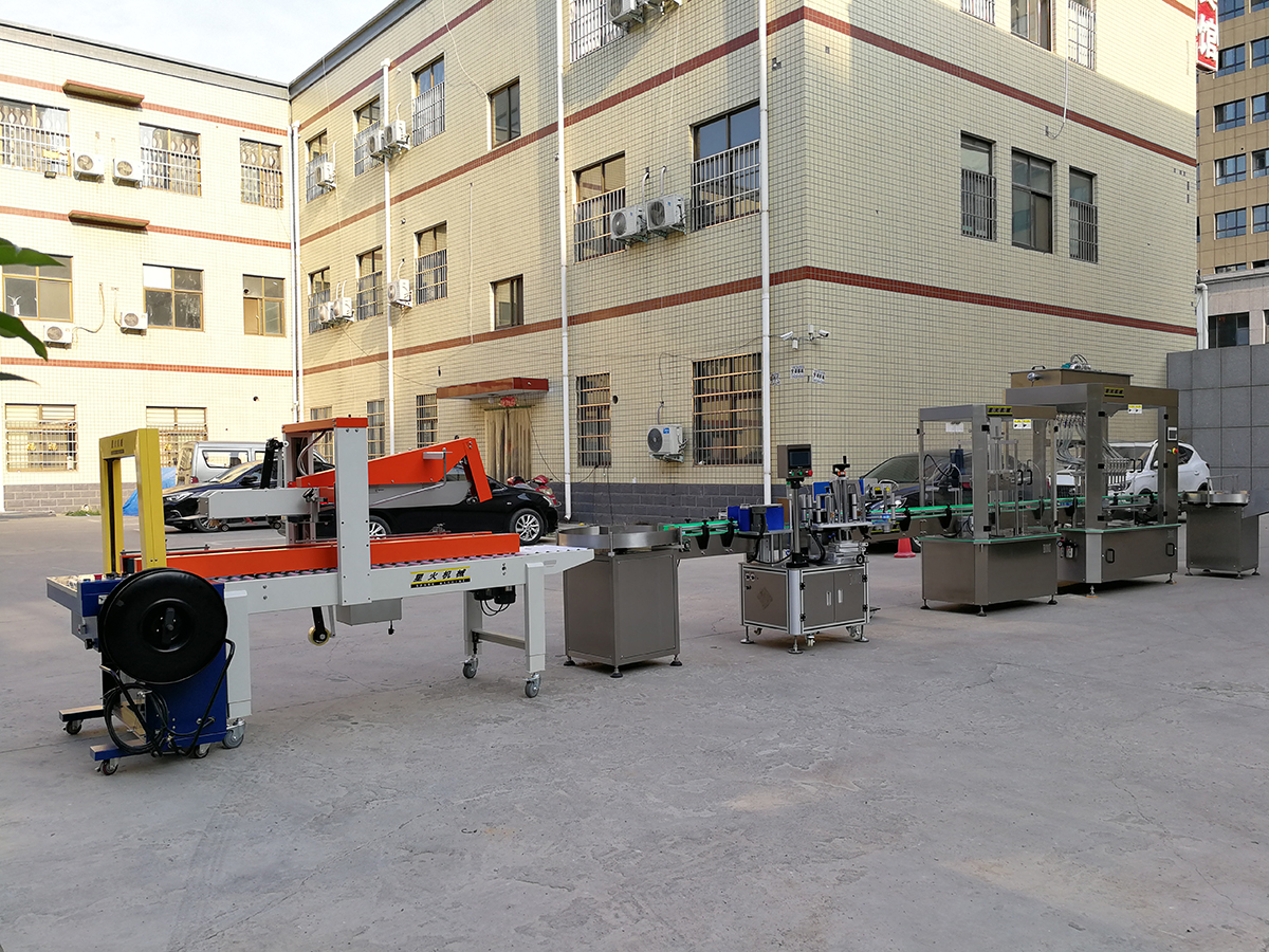 本條灌裝生產(chǎn)線滿足了自動上瓶、上料、灌裝、旋蓋、貼標(biāo)、噴碼、封箱等功能。