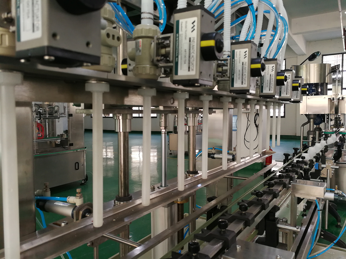 灌裝采用固定流道參數(shù),控制灌裝時間來實現(xiàn)不同計量的灌裝。計量精確度控制在±1%誤差范圍,減少不必要的物料損耗,提高用戶經(jīng)濟(jì)效益。每個灌裝頭的計量可以進(jìn)行單獨調(diào)整,以實現(xiàn)灌裝計量的一致。本機設(shè)定了進(jìn)瓶技術(shù)程序、無瓶、計數(shù)不到位不灌裝,只有當(dāng)計數(shù)器記錄到的瓶數(shù)與設(shè)定的灌裝瓶數(shù)一致時才開始灌裝。灌裝量的多少,可以進(jìn)行初調(diào)到所需灌裝量時,再進(jìn)行微調(diào),即可得到理想的灌裝計量精度。