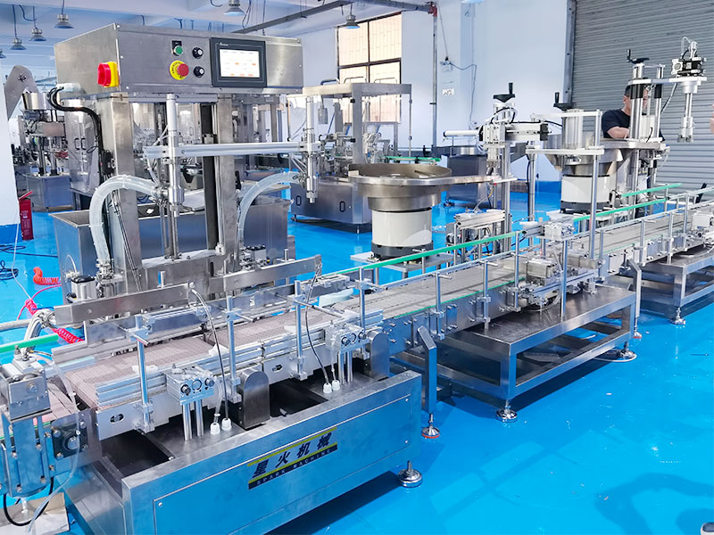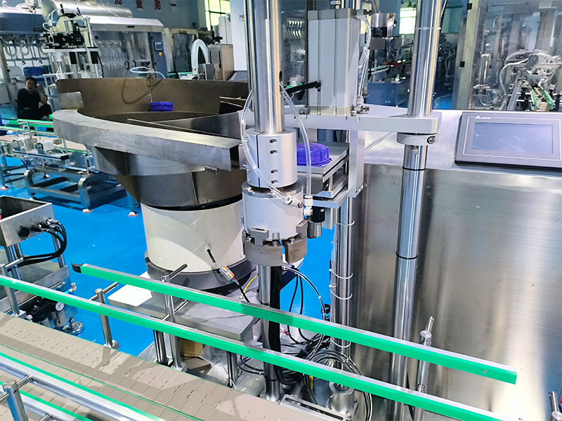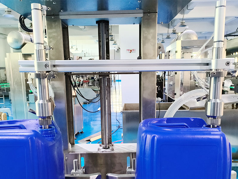 直線式稱重灌裝生產(chǎn)主要由PLC控制系統(tǒng)逐一調(diào)度生產(chǎn)模式,其中的各個環(huán)節(jié)都通過傳感器與執(zhí)行器實現(xiàn)無縫銜接的灌裝優(yōu)勢,工人將所需灌裝的容器放置在輸送帶上,輸送裝置將容器分布送至各個灌裝工位的灌裝頭下方,光電感應(yīng)控制則會實時檢測容器口位置,并將其固定,伺服電機則會精準(zhǔn)的控制灌裝頭的位置標(biāo)準(zhǔn),在進入灌裝區(qū)域后,直線式稱重灌裝生產(chǎn)線的PLC啟動灌裝閥,由此開始進行先快加后慢加的工作條件,在達到設(shè)定的重量后,灌裝閥自動關(guān)閉,完成生產(chǎn)任務(wù),隨后上蓋機將會跟隨容器位置進行自動上蓋、旋轉(zhuǎn)扭矩將其旋緊的工作狀態(tài)。