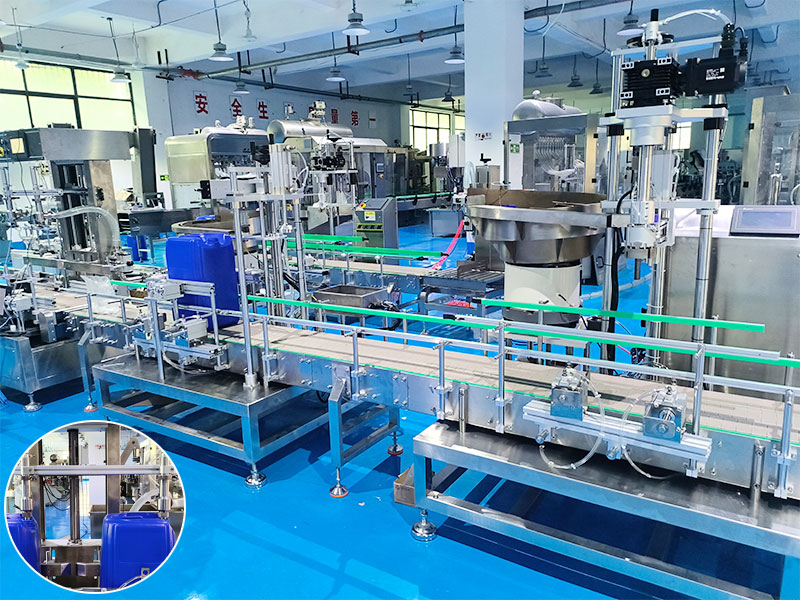 直線式稱重灌裝設(shè)備集成多組獨立稱重灌裝、智能聯(lián)動控制、自動上料、在線監(jiān)測、自動排廢、智能送出等工序,直線式稱重灌裝生產(chǎn)線核心在于實現(xiàn)了聯(lián)動同步生產(chǎn)的作業(yè)模式,根據(jù)不同的生產(chǎn)要求靈活變動灌裝方式,提高灌裝產(chǎn)能。直線式稱重灌裝生產(chǎn)線集中了:輸送機、灌裝機、上蓋機、旋蓋機、貼標(biāo)機等諸多自動化設(shè)備的聯(lián)動灌裝。