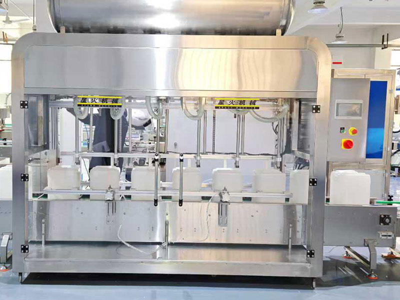 在精細化工、涂料、潤滑油、油漆、防腐劑、除銹劑等帶有一定腐蝕性物料的灌裝工作當中,化工原料稱重灌裝機有著極高的使用率,25升桶裝液體灌裝機以質量為核心的定量方式,完成了高強度、耐腐蝕物料的全自動化操作,化工原料稱重灌裝機通過高精度稱重傳感裝置能夠對10-25升的化工原料提供精準定量灌裝工作。