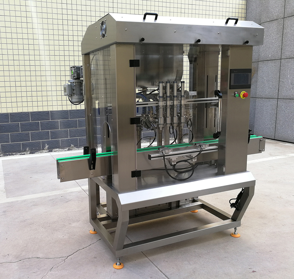 是我司新款的4頭醬料灌裝機(jī),設(shè)計(jì)新穎、外形美觀,具有界面友好,適應(yīng)性強(qiáng)、操作簡(jiǎn)單、灌裝量準(zhǔn)確,維護(hù)方便等特點(diǎn)。設(shè)備表面和物料按觸面均采用304不銹鋼材料制造,無滴漏,無拉絲,易清洗,完全符合食品行業(yè)標(biāo)準(zhǔn)要求。