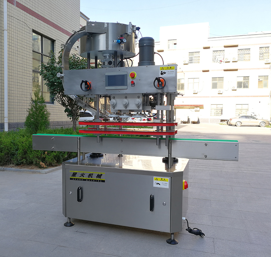 XH-160B型全自動直列式壓蓋機是我公司很新改進的一種新型壓蓋機。四臺調速電機分別用于供蓋、夾瓶、傳送、壓蓋,機器自動化程度高,穩(wěn)定性好,調節(jié)方便、更換瓶型或蓋時無需備件,只需作調整即可完成(如配上蓋機,可進行自動上蓋)。外觀美觀大方、靈巧、壓蓋速度快,合格率高,可適用于食品、醫(yī)用、化工、飲料等行業(yè)的不同瓶形的旋蓋。